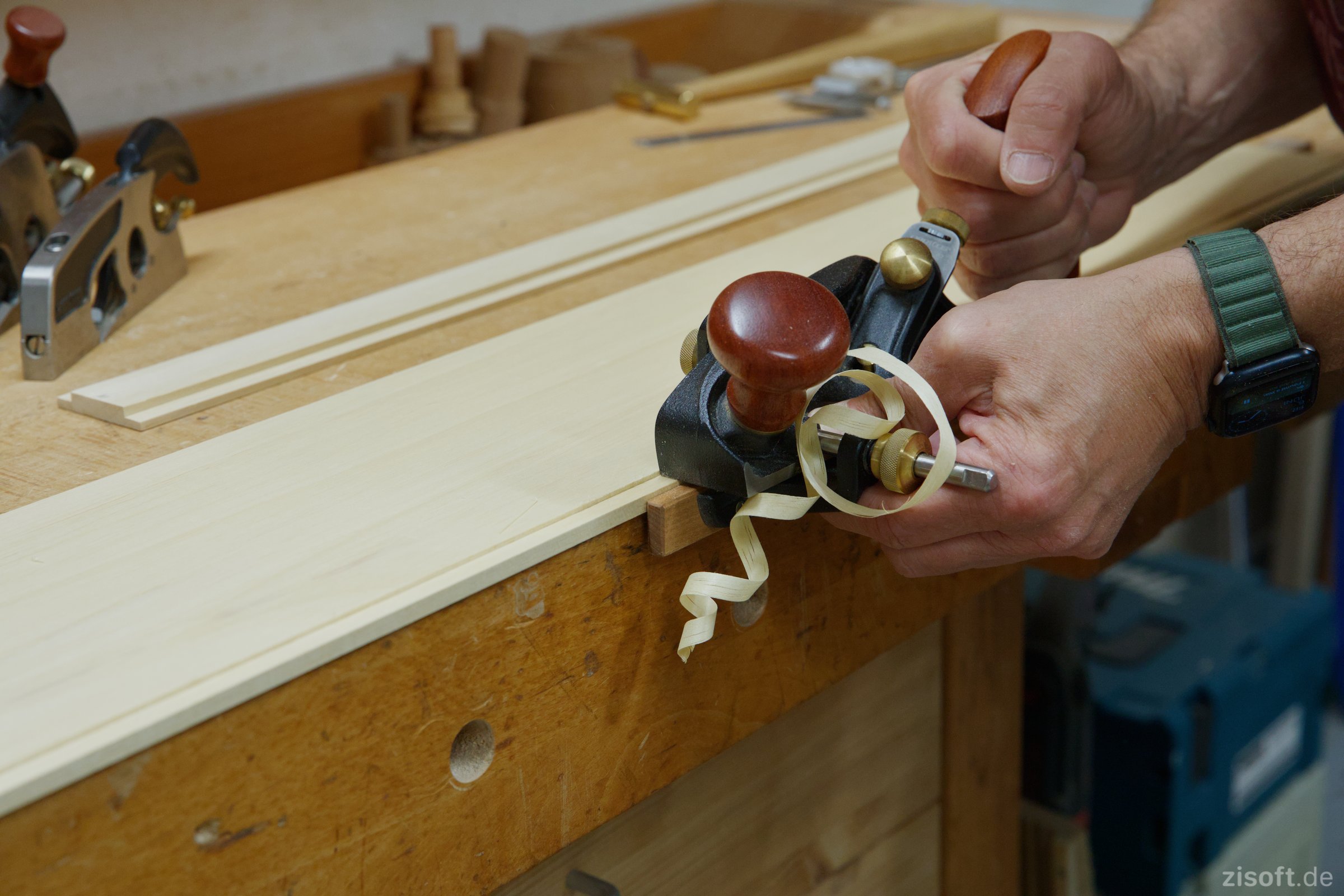 - Den Falz am Schubladenboden hobele ich mit dem Falzhobel an.